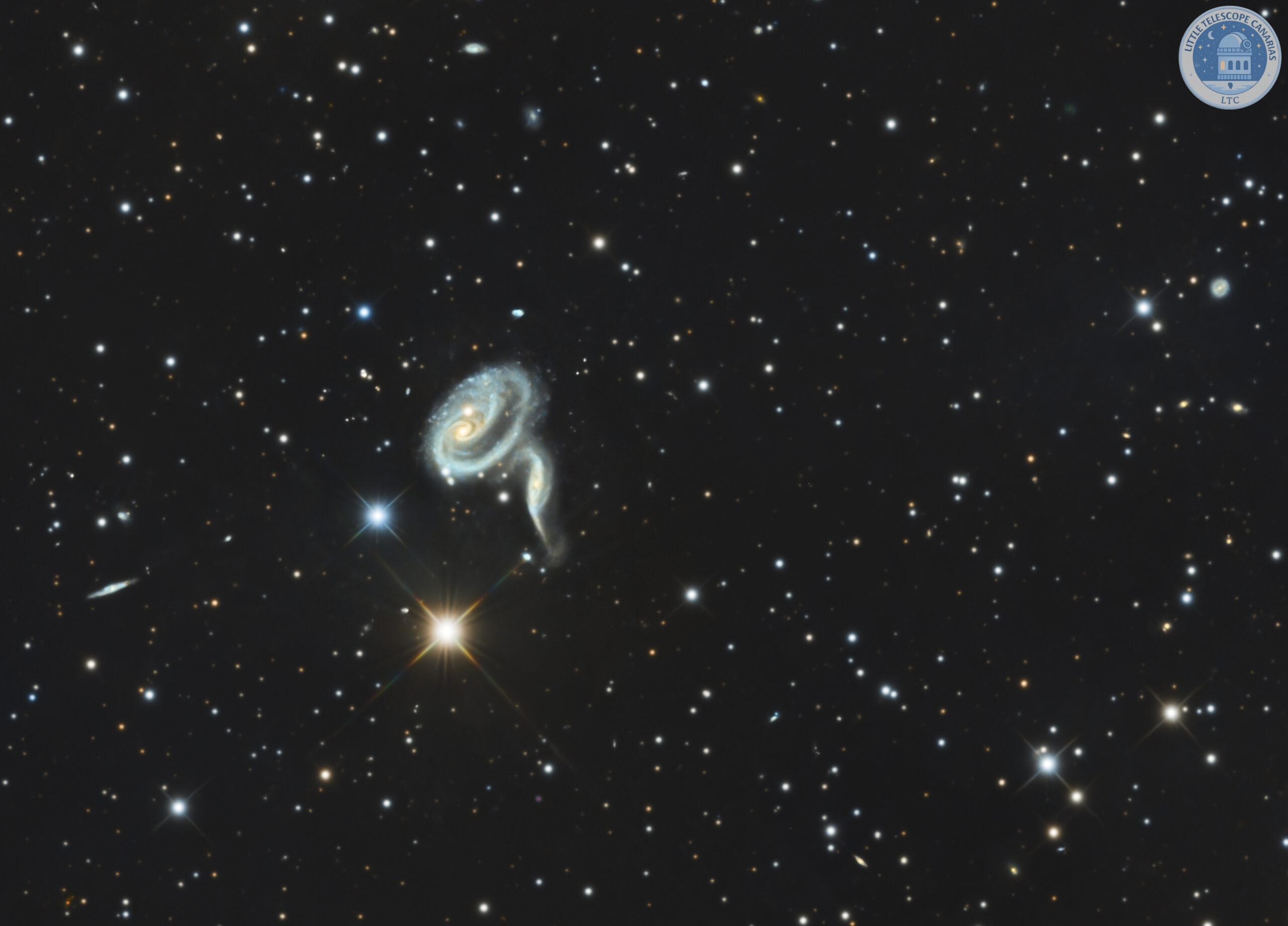 El equipo de LilTecan ha captado este sistema en alta resolución, resaltando las regiones de formación estelar y la delicada estructura de los brazos distorsionados, especialmente visibles en longitudes de onda ópticas.